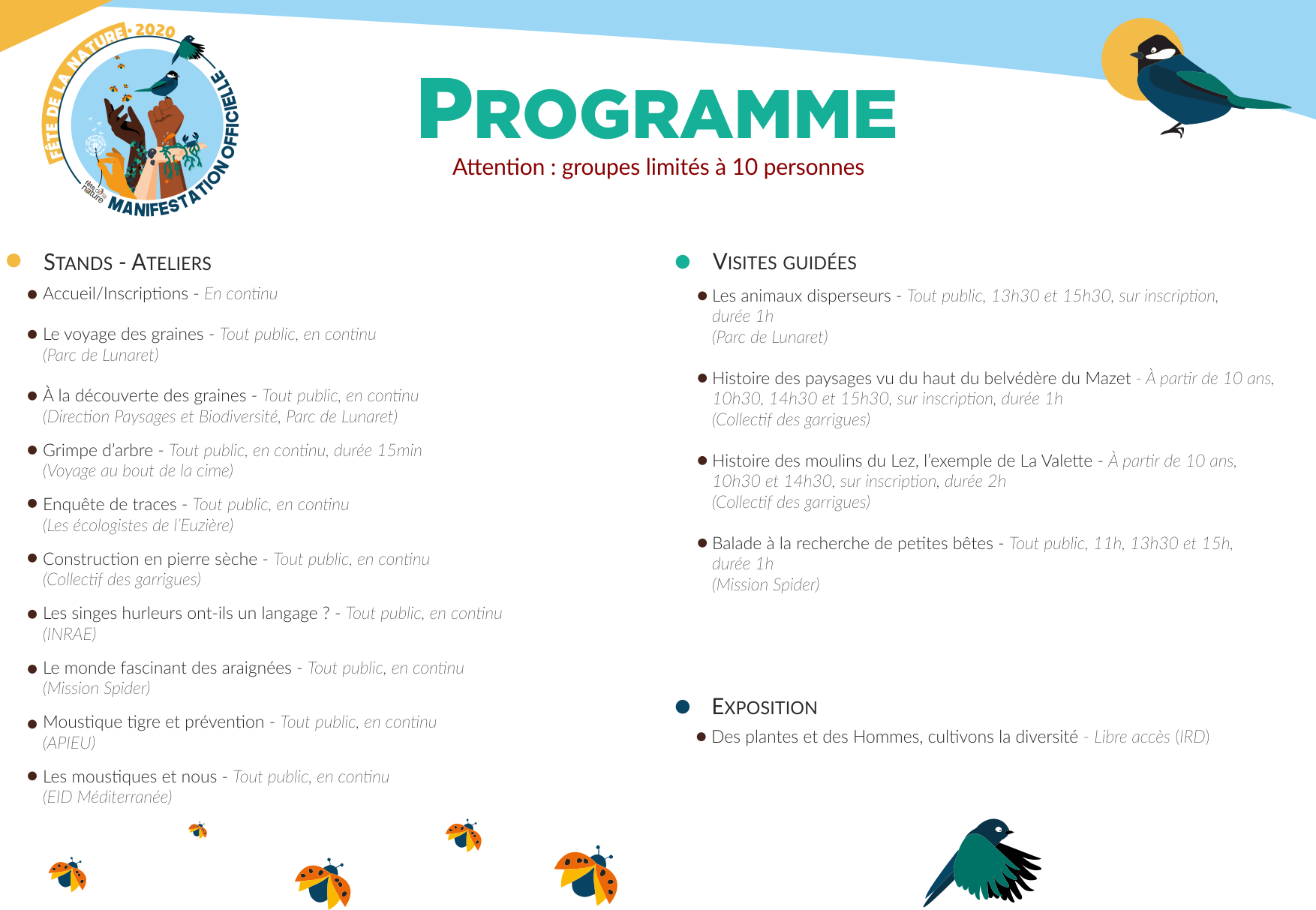 Des animations et des rencontres vous attendent au Parc de Lunaret pour découvrir les animaux et plantes sauvages qui vivent dans notre région.