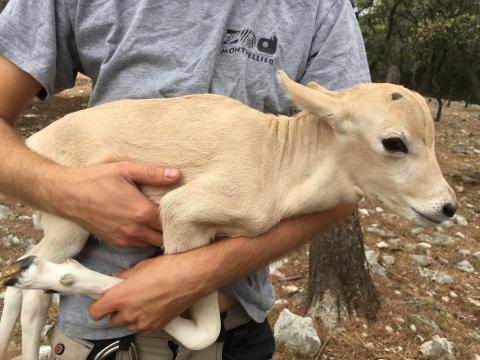 Mardi 20 Août 2019, l'équipe animalière du Parc de Lunaret a capturé ce bébé Addax pour la première fois afin de faire un bilan de santé et l'identification de son sexe.
