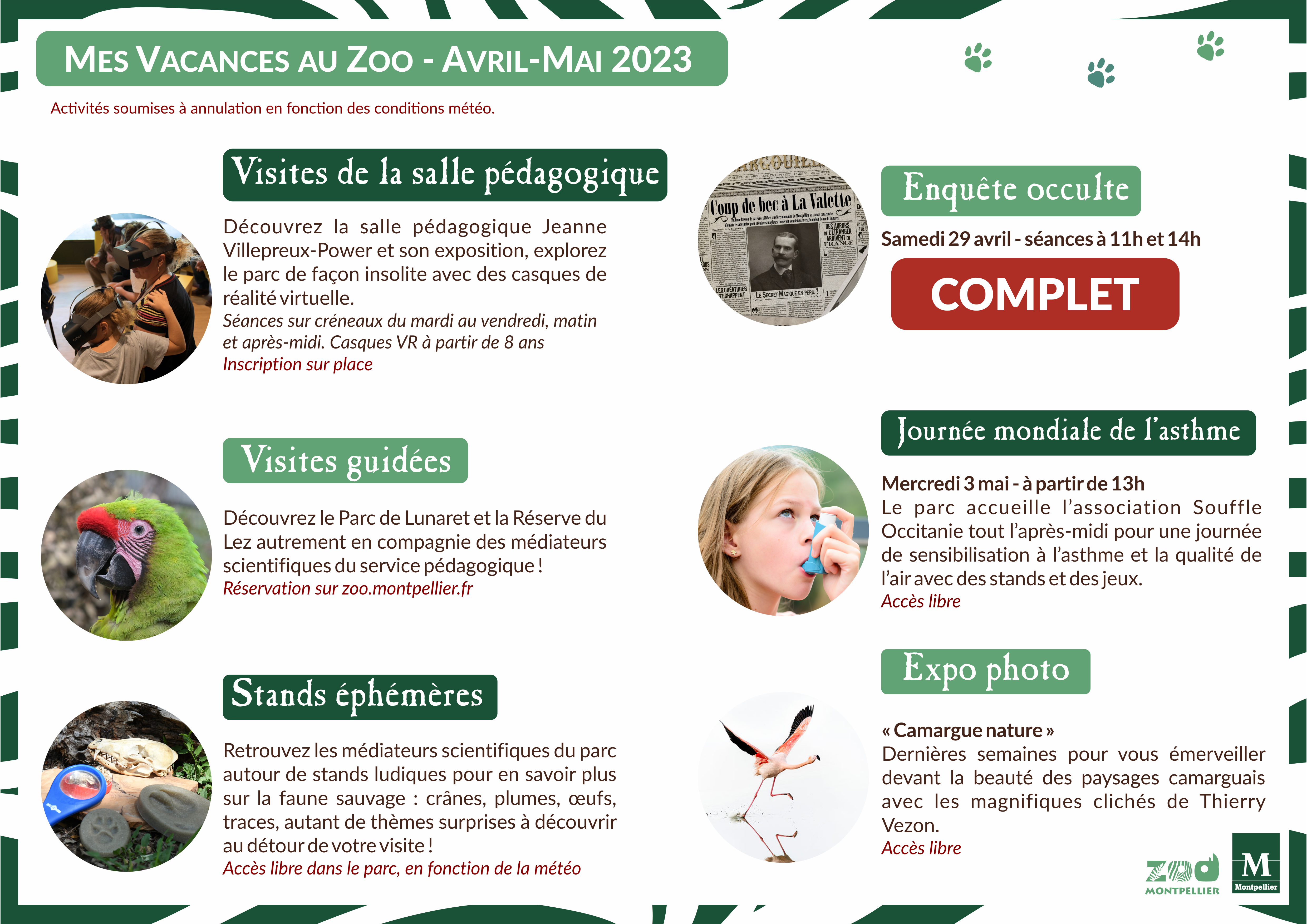 Programme des vacances de printemps 2023