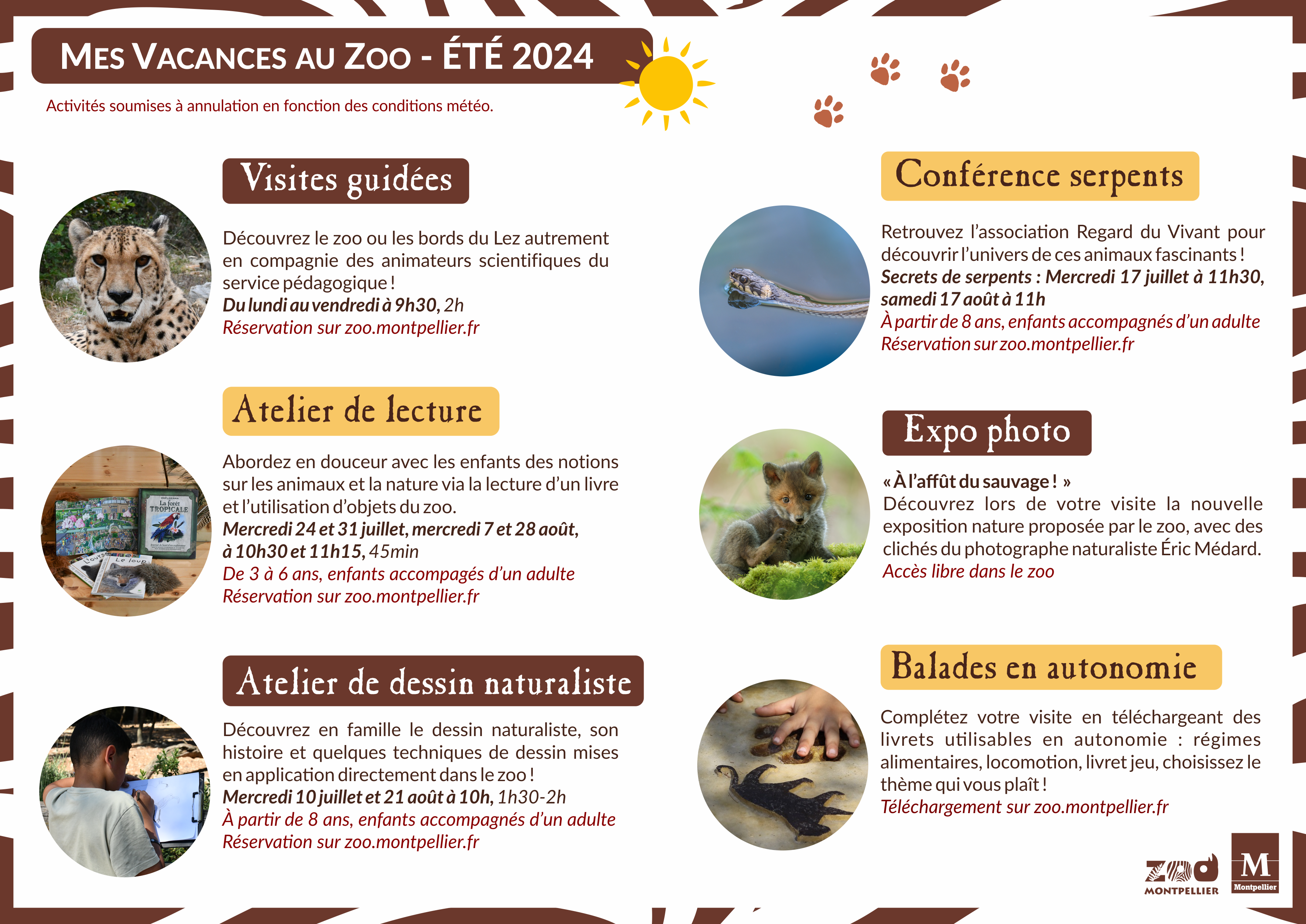 Attention, le zoo et la réserve du Lez sont soumis au risque incendie et peuvent être fermés si le risque est élevé. Les activités sont donc susceptibles d'être annulées.